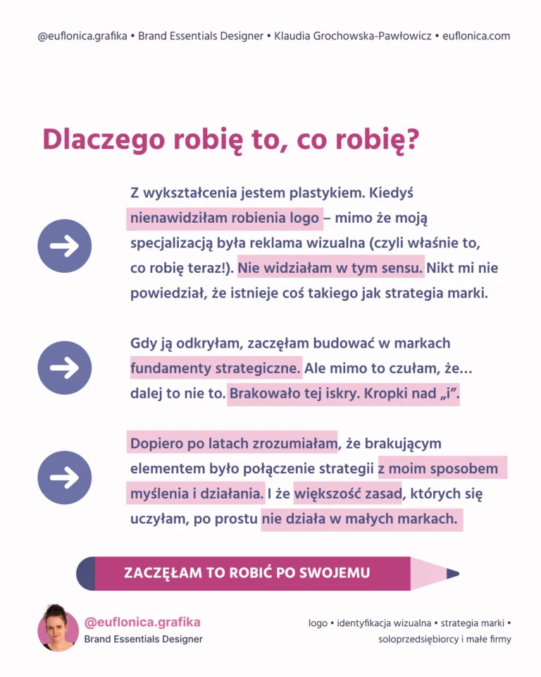Zaczęło się od nienawiści do tworzenia logo. Teraz pomagam tworzyć marki, których nie da się zapomnieć.